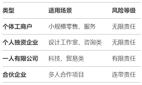避坑建议:优先选择“一人有限公司”,隔离个人财产风险,注册资本认缴无需实缴。