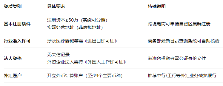 · 避坑点:含"进出口"字样需前置审批