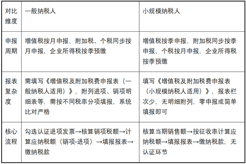 2026年西安申报期限顺延规则统一,但两类纳税人的申报频率、报表难度差异明显: